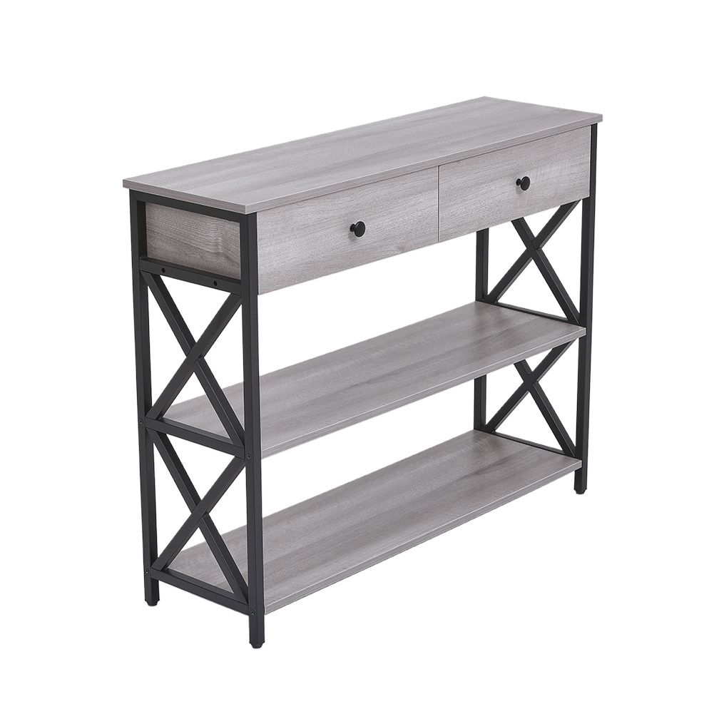100 Cm W Rustic Grey Narrow Wooden Console Table With Drawers