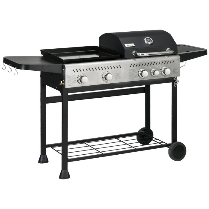 15 kW Gas BBQ Grill and Plancha with Side Burner, Black