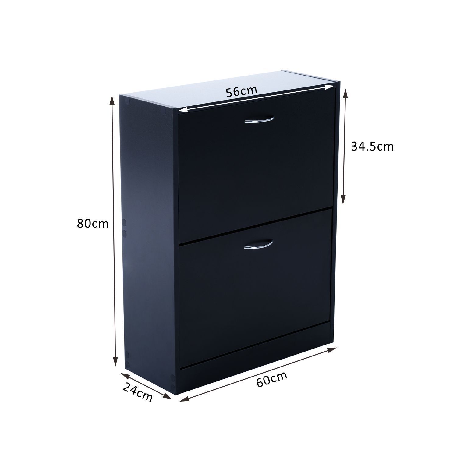 This shoe storage cabinet from homcom is an ideal solution for keeping your shoes organized and tidy. Consisting of two separate pull down doors, each can store up to 6 pairs of shoes. Made from particle board with a black pain finish, this unit will look great in any home, with a fantastic design and convenient utility.