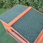 The ideal rabbit house form comes with one side fenced. A ramp leads to indoor area protecting pets from weather elements This indoor space has a netting bottom and a waste collection area, as well as a window to add further light. The entire structure is constructed from treated wood and keep weather