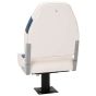 This practical boat seat set will make a great addition to your boat. Easy to clean: This boat seat is made from PVC and PU, making it water-resistant, easy to clean, and quickly dry.Comfortable: This boat seat has a high backrest that has compression foam padding. You will stay comfortable all day and release the stress on your back.Long-lasting and sturdy: The boat seat has an aluminium construction, making it durable and long-lasting.Foldable design: The boat seat features a foldable design, allowing the backrest to fold down when not in use. Additionally, the inclusion of a fixing strap sewn into the seat enhances both durability and convenience for carrying and storage.Universal compatibility: This boat seat pedestal is suitable for all seats with a flat bottom or where the hole size can be used for ball bearings, giving you the freedom to choose and combine according to your specific needs.