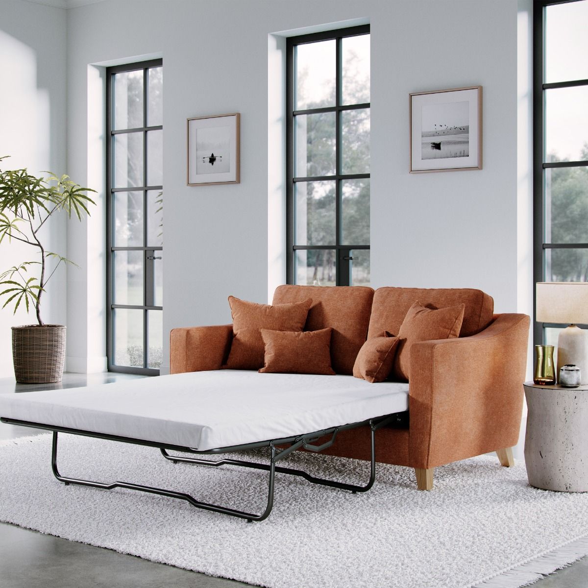 2 Seater Sofabed - KRISTY Fabric - Orange