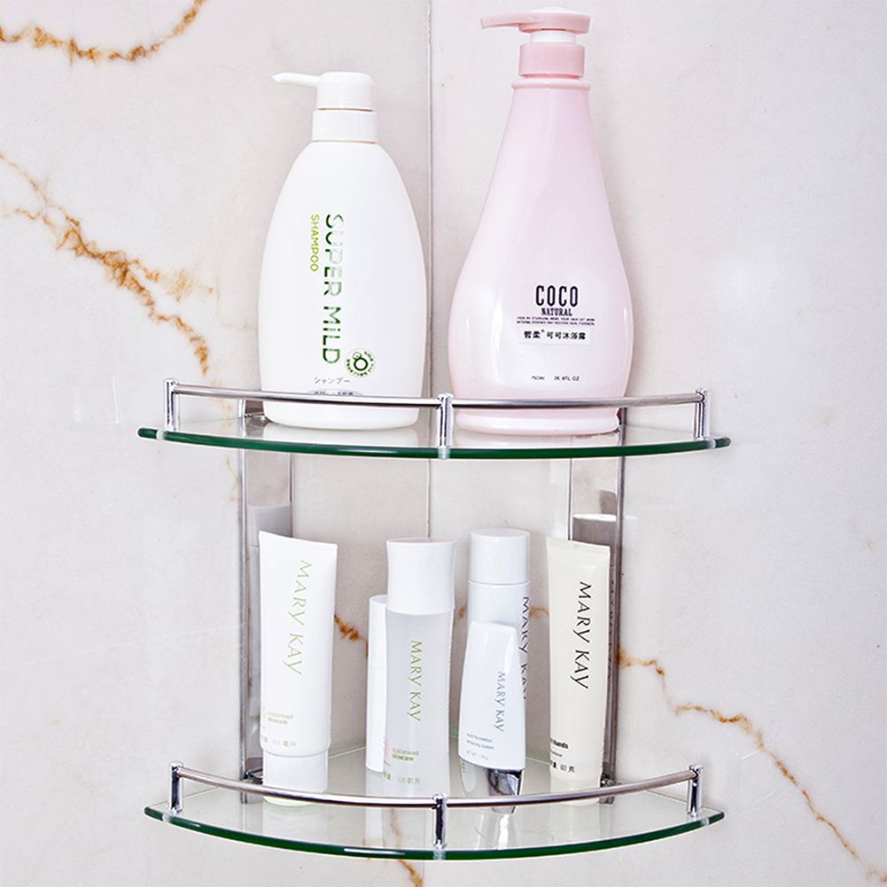 2-Tier Tempered Glass Corner Shelf Bathroom Wall Mounted