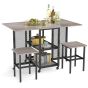 3-Piece Foldable Dining Table Set with Lockable Wheels for Small Place-Grey