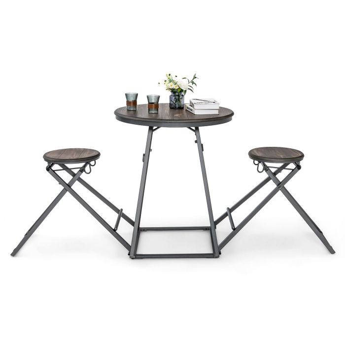 3-Piece Round Table and Stool Set with 2 Foldable Stools-Grey