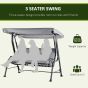3 Seater Outdoor Garden Swing Chairs Thick Padded Seat Hammock Canopy Porch Patio Bench Bed - Grey