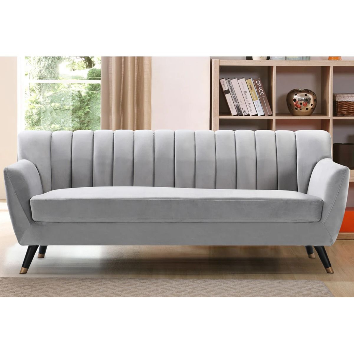 3 Seater Sofa - VIVENTO Velvet Fabric Sofa - Grey