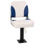 This practical boat seat set will make a great addition to your boat. Easy to clean: This boat seat is made from PVC and PU, making it water-resistant, easy to clean, and quickly dry.Long-lasting material: The boat seat pedestal is made of steel, making it sturdy and long-lasting. Its black powder-coat finish adds extra protection against the harsh marine environment.Comfortable: This boat seat has a high backrest that has compression foam padding. You will stay comfortable all day and release the stress on your back.Foldable design: The boat seat features a foldable design, allowing the backrest to fold down when not in use.Universal compatibility: This boat seat pedestal is suitable for all seats with a flat bottom or where the hole size can be used for ball bearings, giving you the freedom to choose and combine according to your specific needs. GPSR