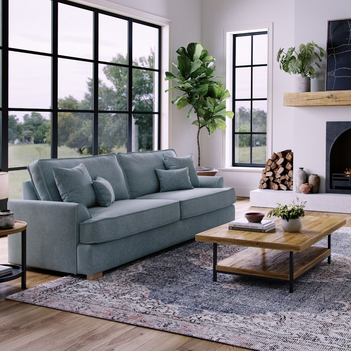 4 Seater Sofa - HERITAGE Fabric - Light Blue