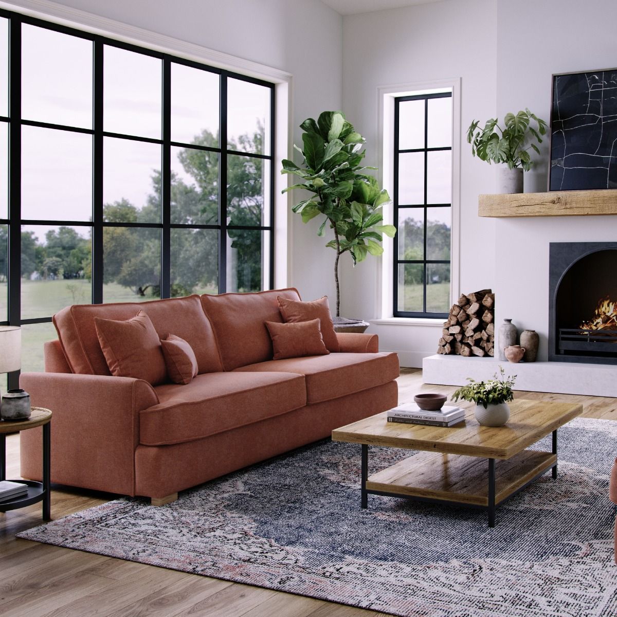 4 Seater Sofa - HERITAGE Fabric - Orange