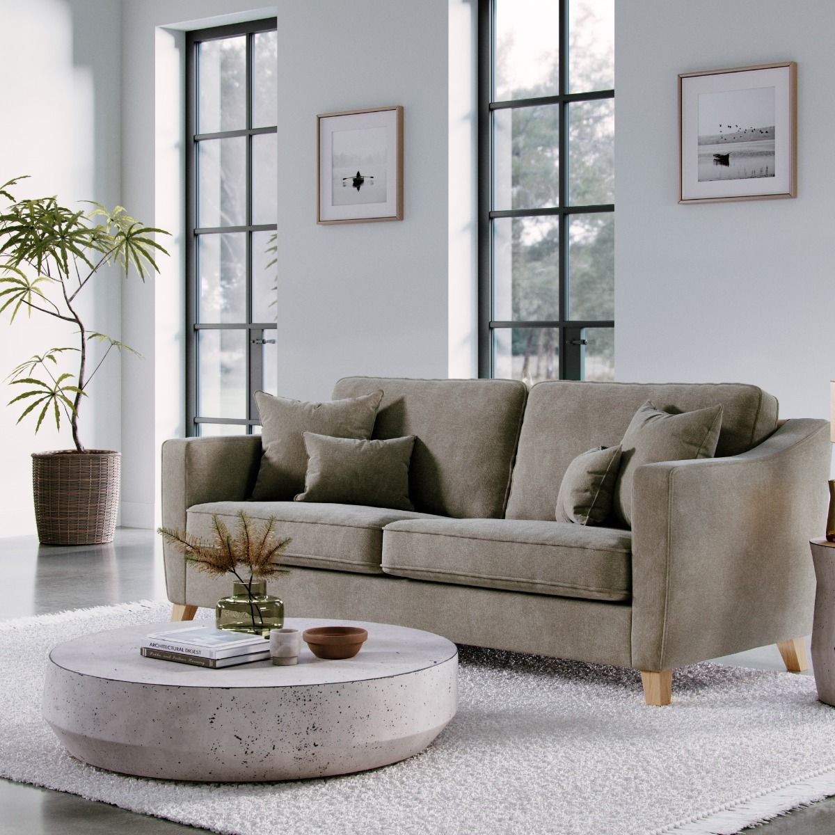 4 Seater Sofa - KRISTY Fabric - Dark Beige