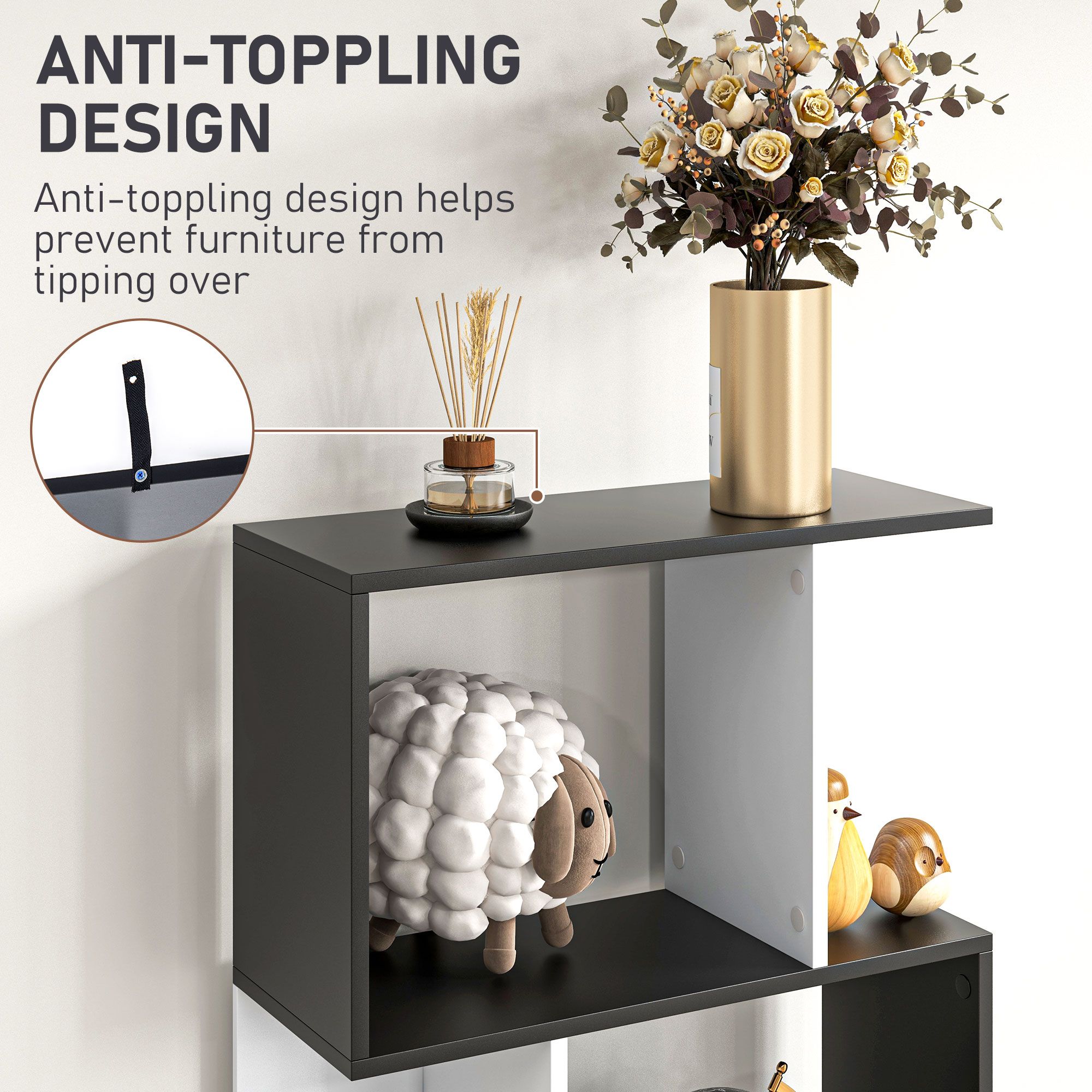 - ANTI-TIPPING: This freestanding shelving unit features an anti-tipping design and can be fixed to the wall to prevent it from tipping over