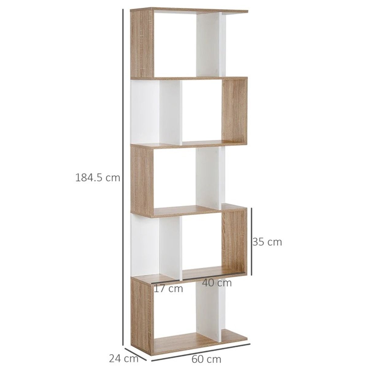Tired of the same old look? Break away from the norm with the unique and contemporary style of this S-shape bookcase from. Five shelves of storage make it easy to display your favorite books, photos, collectables and more. Best of all, thanks to an open-back design, it doubles as a bookshelf and room divider in one.