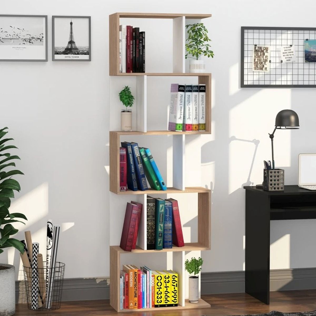 - MODERN BOOKCASE: This 5-Tier S shape storage display unit adds modern and contemporary element to your living space, such as study room, bedroom, office and more