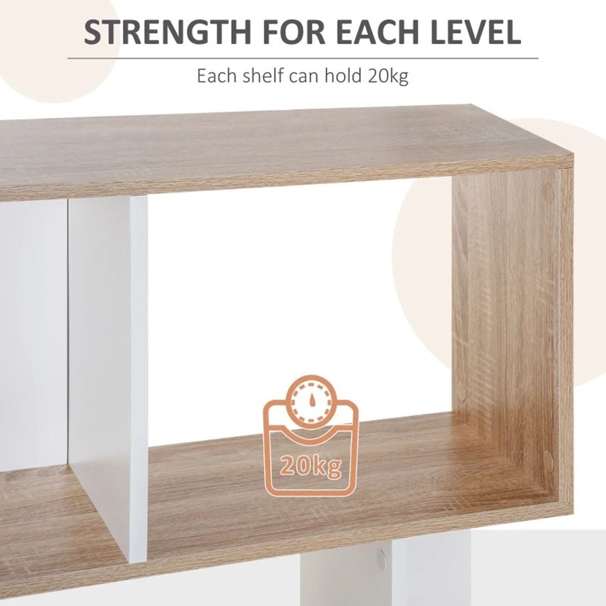 - Modern S-shaped bookcase offers five tiered shelves for convenient displaying in your home or office