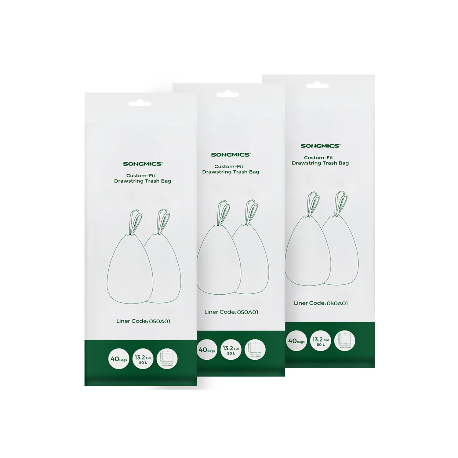 50L Drawstring Rubbish Bags 2 Rolls 40 Pieces
