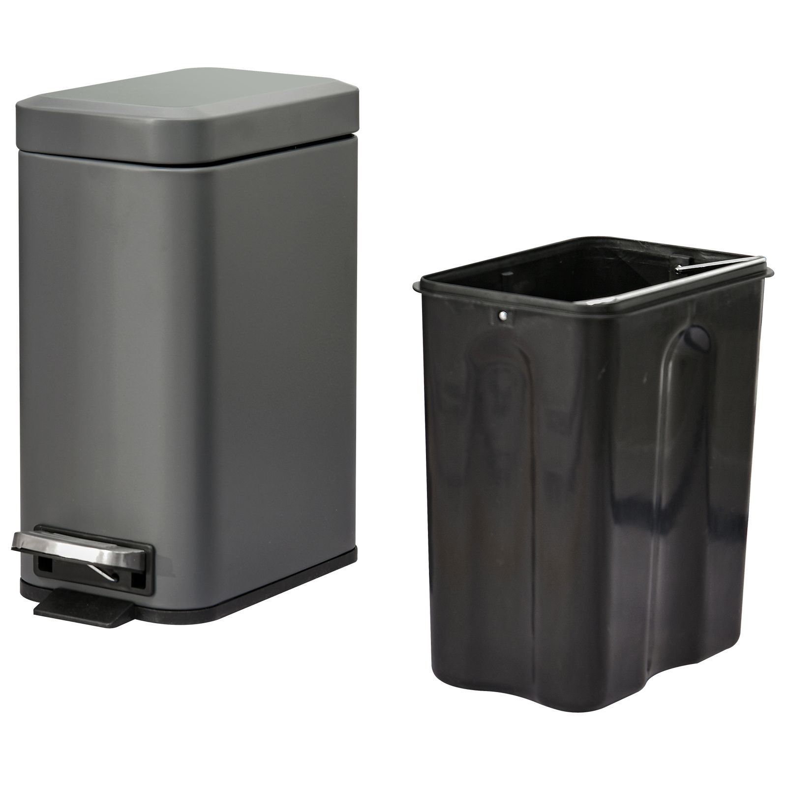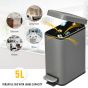5L Rectangular Compact Bin Steel Body Removable Bucket Quiet-Close Lid w/ Pedal Lid Rubbish Trash Can Garbage Tidy Clean Grey