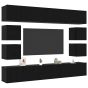8 Piece TV Cabinet Set - Wall-mounted Black Oak Engineered Wood