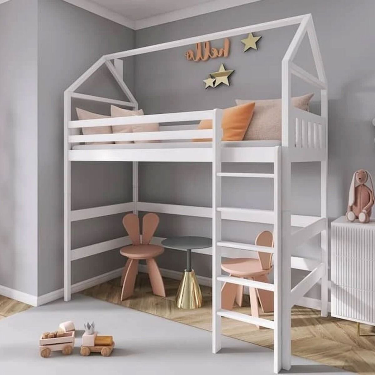Transform your child's room into a haven of comfort and style with the Ajax Siena Wooden Loft Bed featuring a Foam/Bonnell Mattress—a harmonious blend of durability, safety, and coziness. Crafted from solid pine wood, this loft bed boasts a timeless design. The included slatted bed base, also made of pine wood, ensures reliable support. The Foam/Bonnell Mattress, with its Bonnell sprung and foam composition and a convenient zipper cover, promises a restful night's sleep. The three-layered spray of water-based paint prioritizes safety, avoiding harmful solvents for your child's well-being.