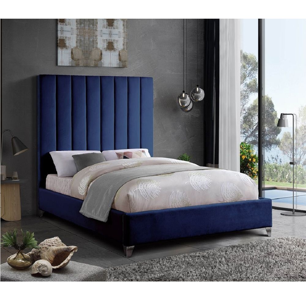 Alexo Plush Velvet Bed - Blue in 5 Sizes
