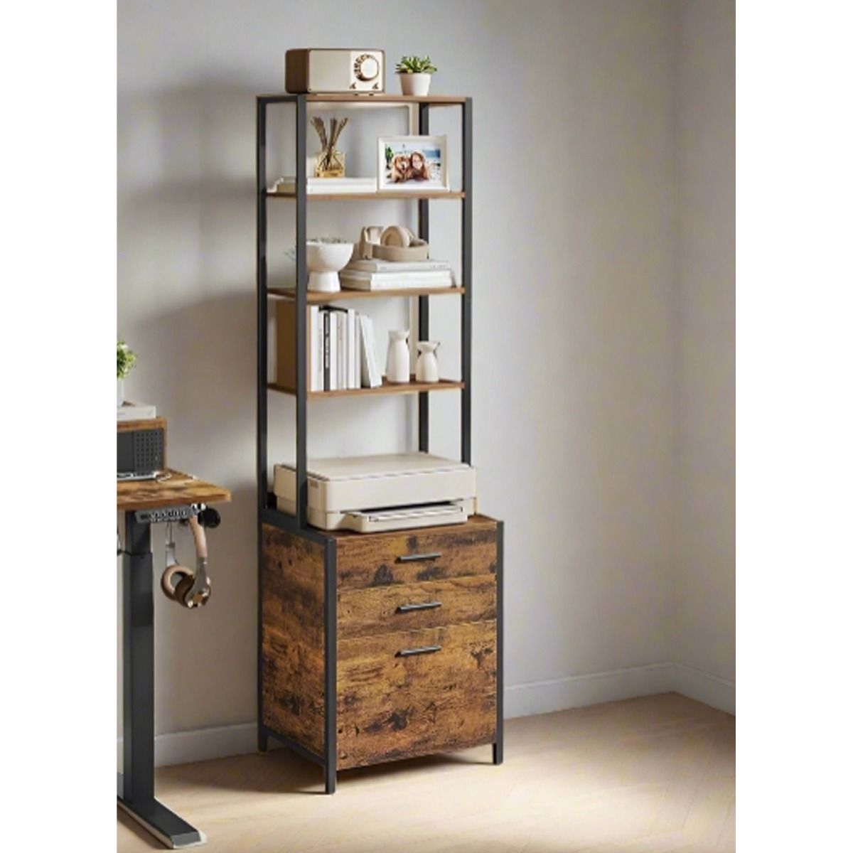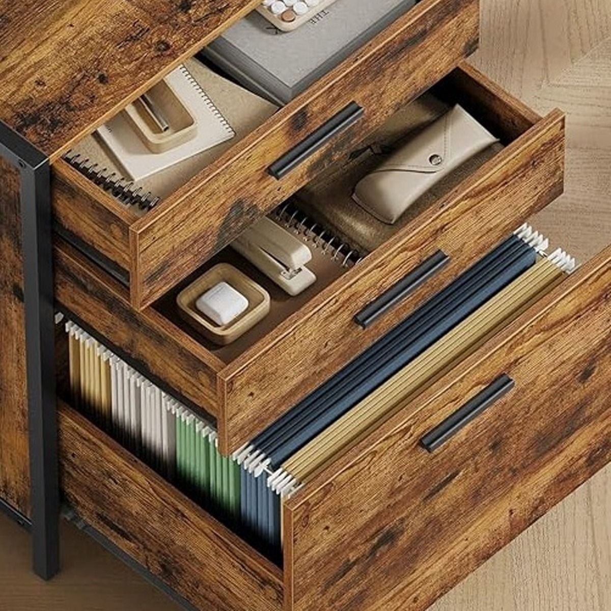 ALVERIX Filing Cabinet 3-Drawer Office Cabinet with Adjustable Shelves - Rustic Brown