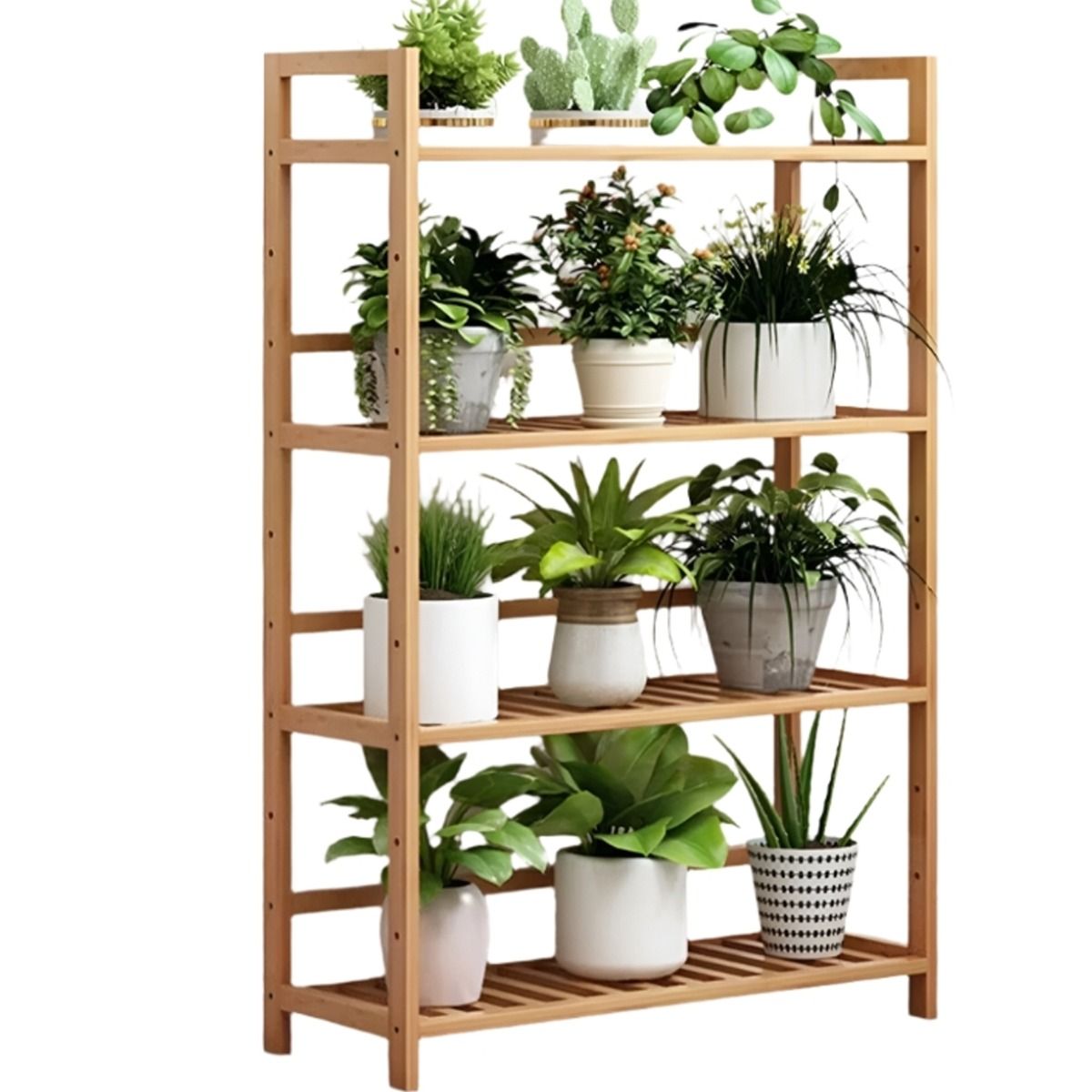 ALVERIX Plant Stand 4-Tier Bamboo Ladder Shelf with Adjustable Shelves - Natural