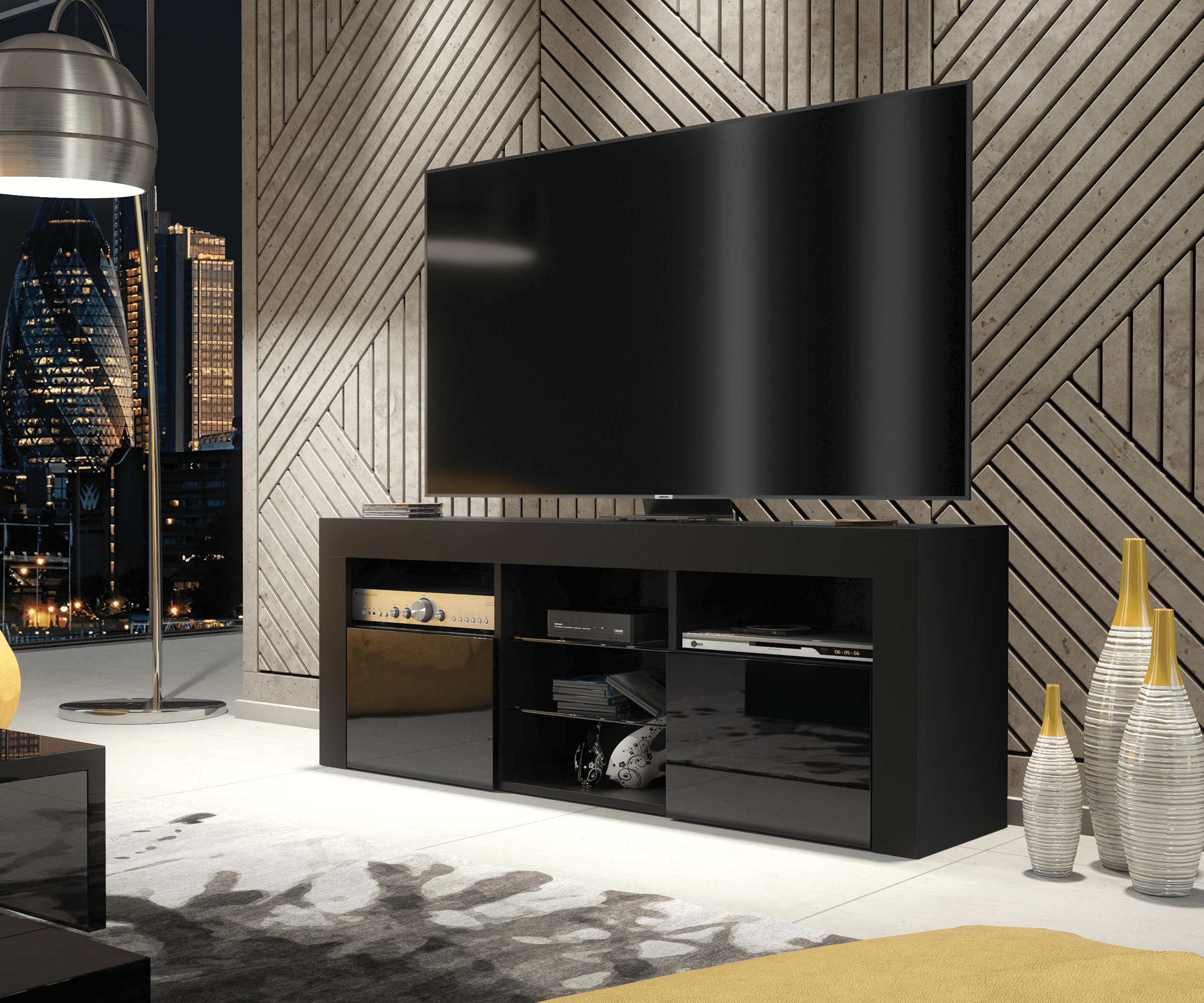 AMBA Modern TV Unit Stylish Storage Cabinet with Gloss Doors 145cm - Black