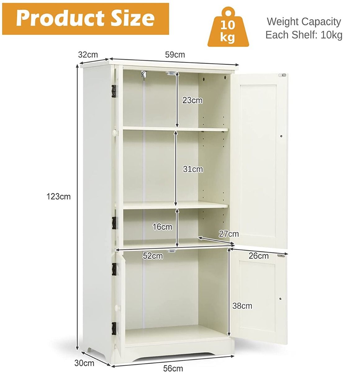 Antique Wooden Storage Cabinet Cupboard Shelf-White