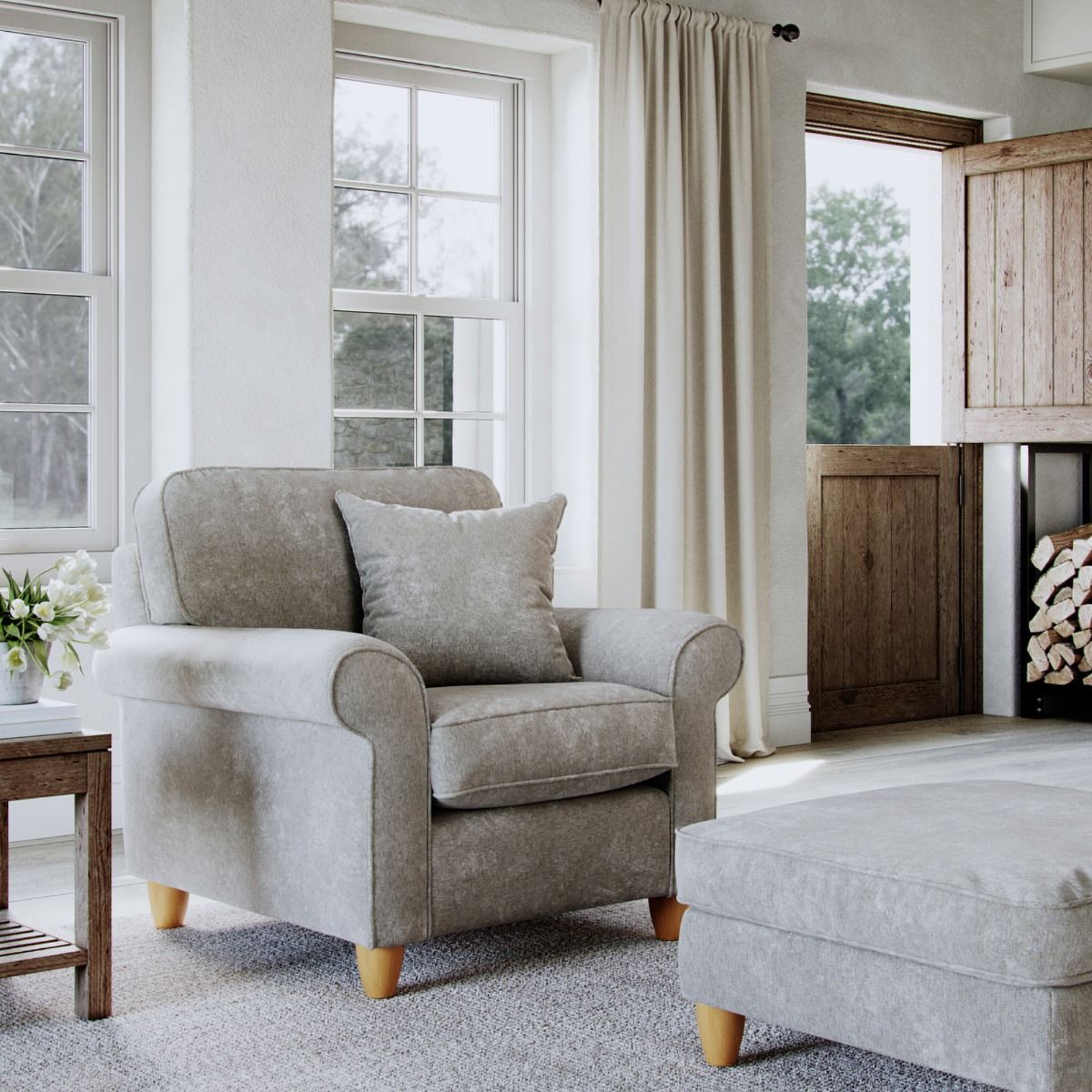 Armchair - COASTAL Fabric - Beige 92cm