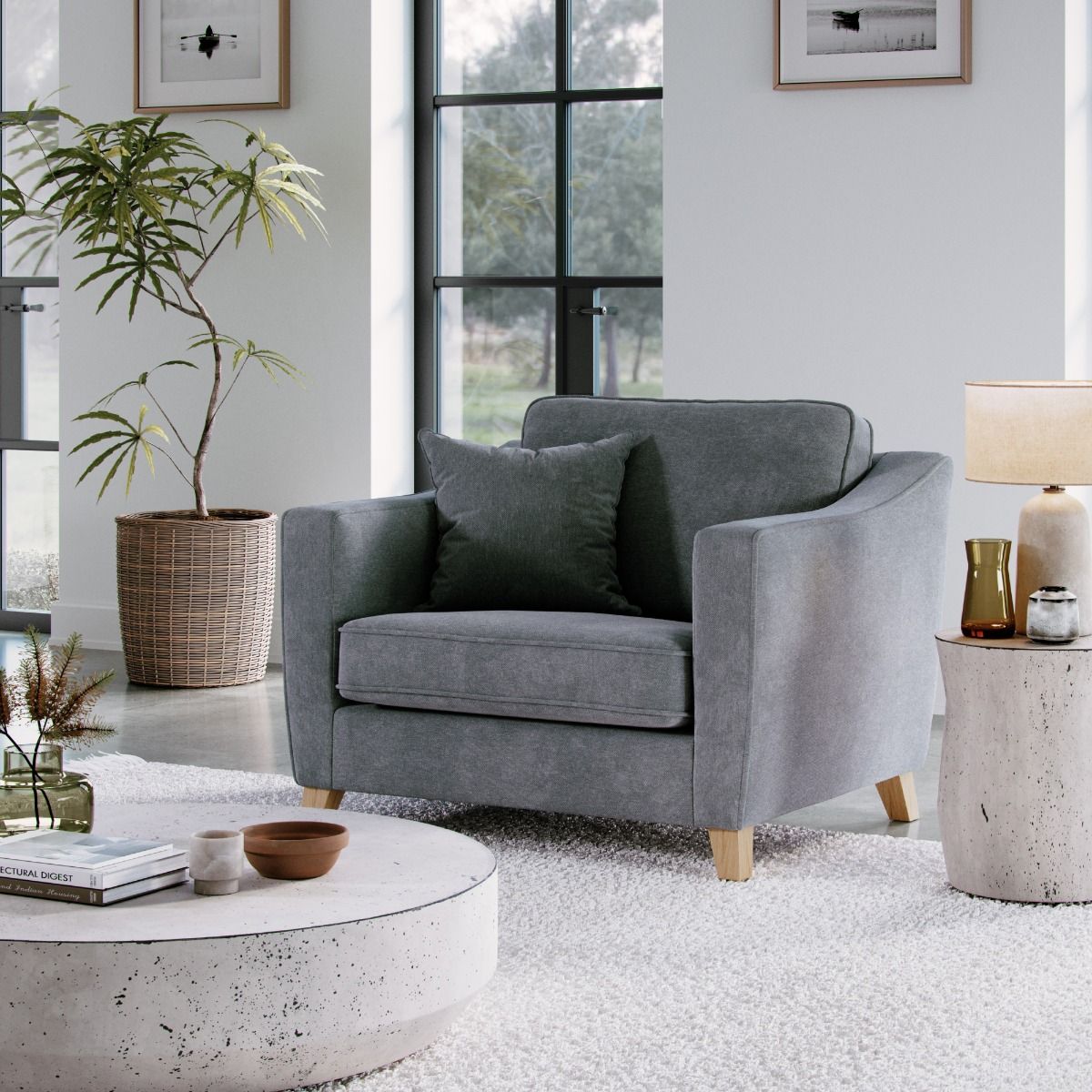 Armchair - KRISTY Fabric - Light Grey 110cm