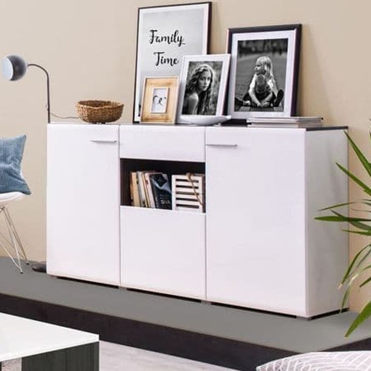 Bannister Gloss White and Black Top Sideboard