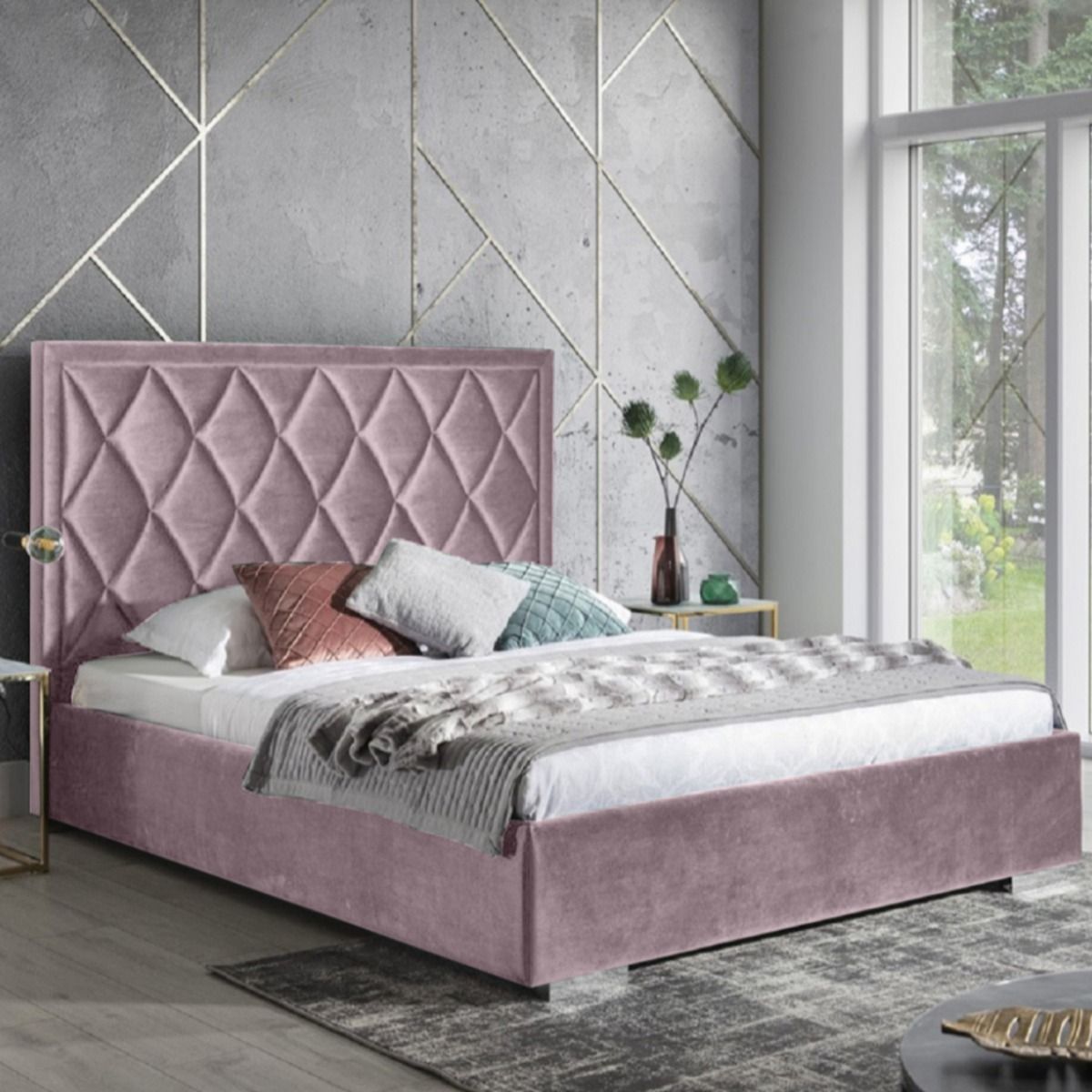Beauty Plush Velvet Fabric Bed, Pink Colour - 5 Sizes