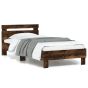 Bed Frame with Headboard and LED Lights Smoked Oak 90x190 cm Single