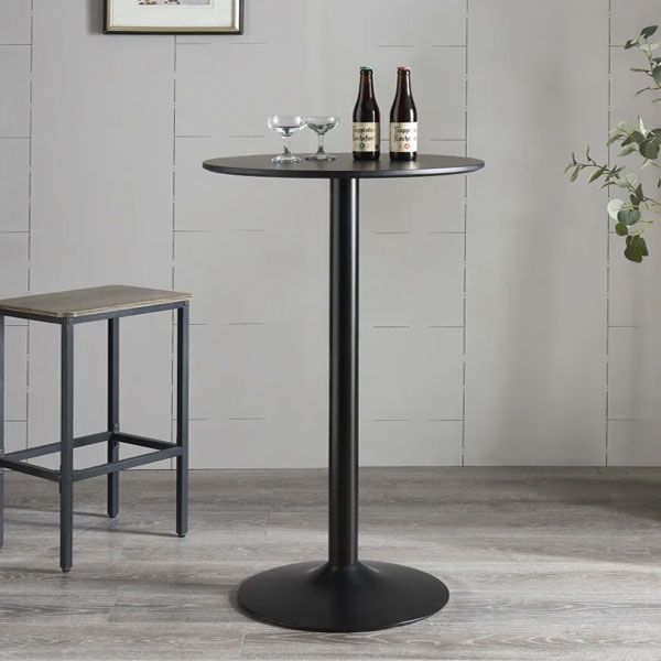 Birgit 60cm Round Top Bar Table with Steel Base - Black