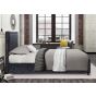 - The Hannover fabric bed features a cushioned headboard