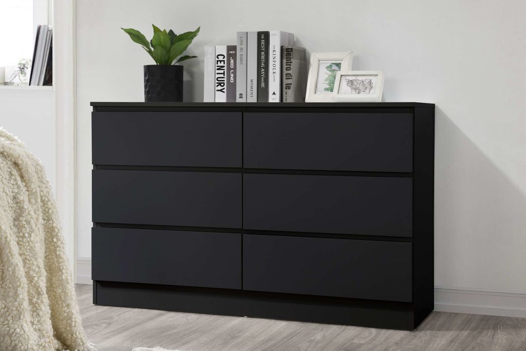 OPAL Black Chest of Drawers - Large-sized, 6 Drawers, Double