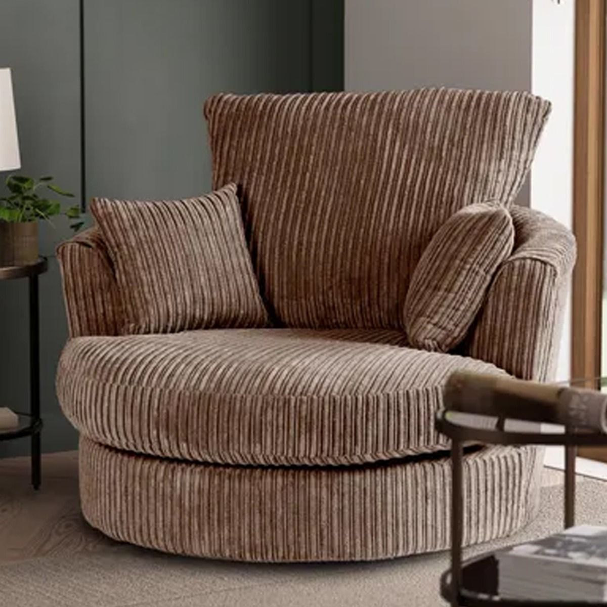 Blake Jumbo Cord Swivel Chair - Chocolate