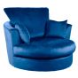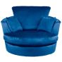 The Blake Swivel Chair boasts distinctive velvet upholstery, perfect for bringing a modern style that will liven up any living space. Boasting a compact design perfect for any space, this chair provides luxurious comfort thanks to the foam and fibre filling of the deep set cushions and sprung seat which allows you to really sink in and unwind. This stylish and versatile chair also swivels on a sturdy metal base and is the perfect piece to suit a variety of home settings and styles. Available in a choice of colours