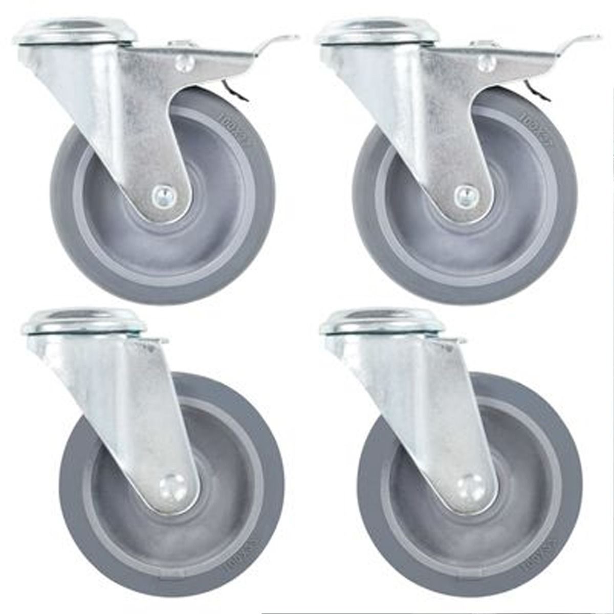 - Delivery includes 2 bolt hole swivel casters and 2 bolt hole swivel casters with double brakes