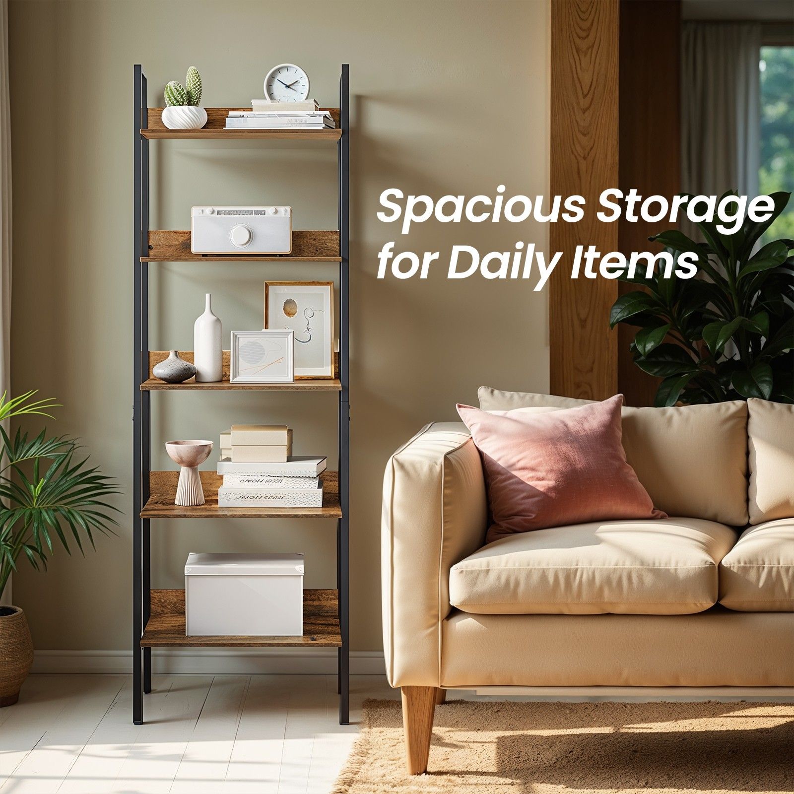 Bookcase - VERRA 5 Tier Ladder Shelf Slim Open Shelf - Black