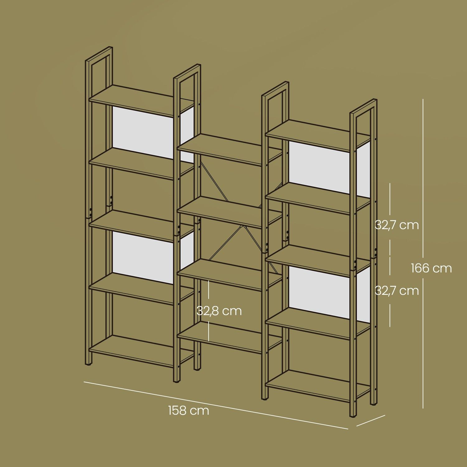 Bookcase - VERRA 5 Tier Metal Frame Bookcase with 14 Shelves - Grey