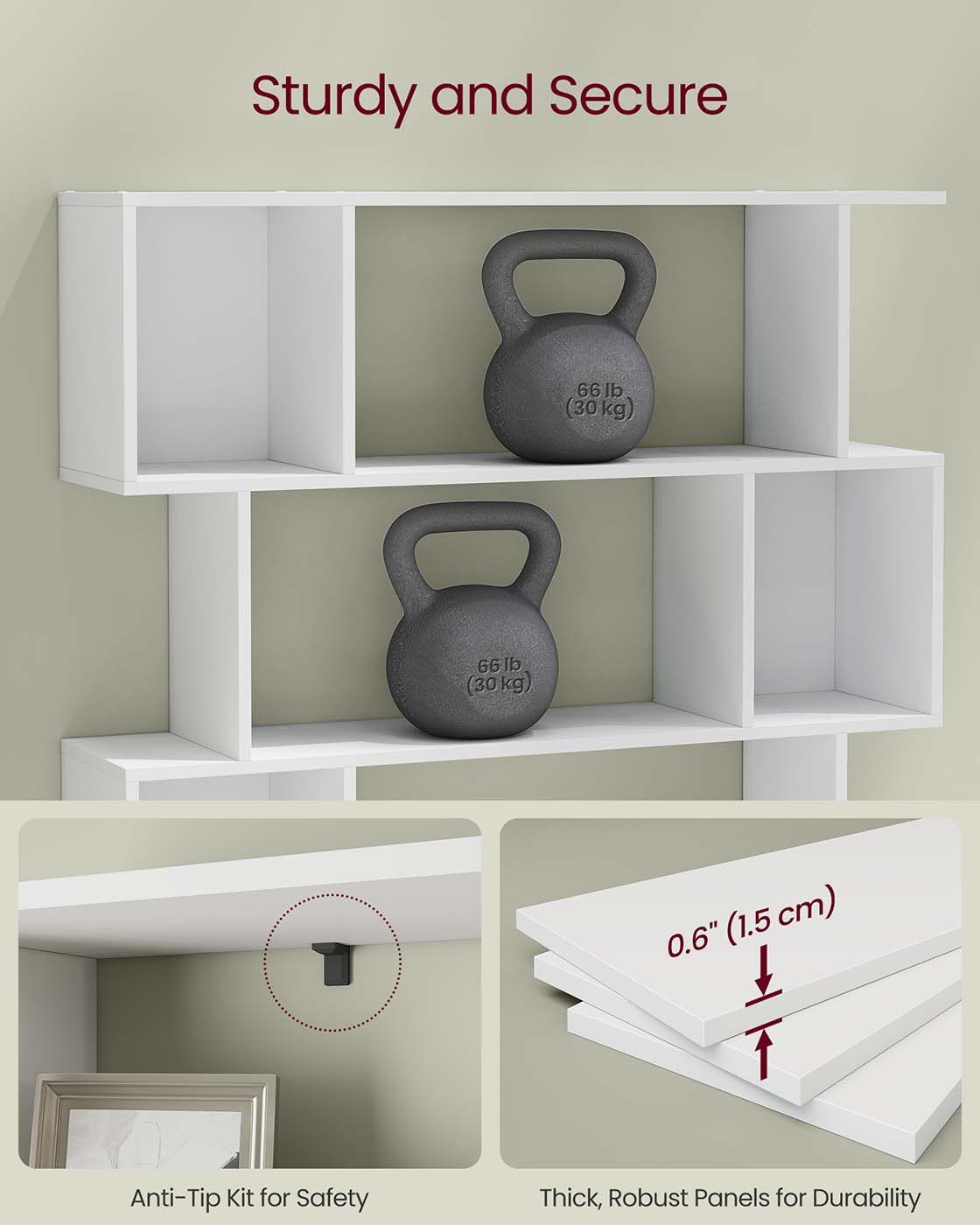 Bookshelf - MONNIA 5 Tier Wooden Shelf with Open Compartment - Matte White