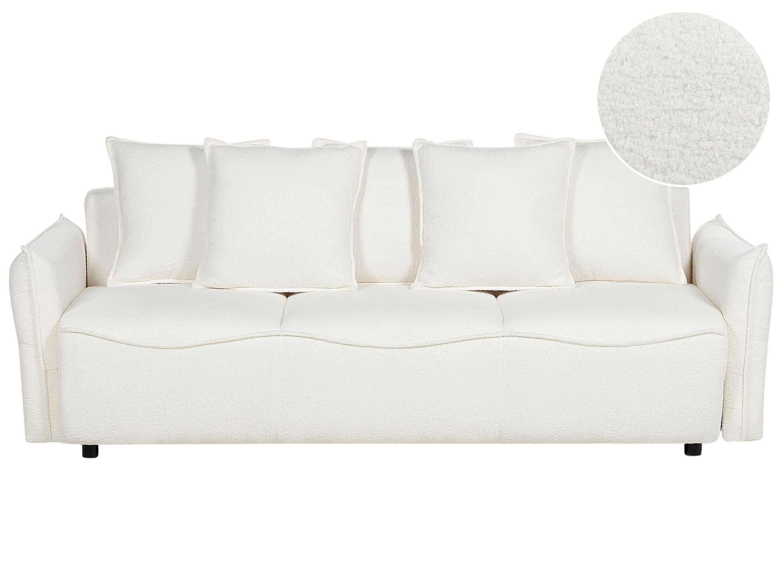 Boucle Sofa Bed with Storage White KRAMA