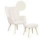 Boucle Wingback Chair with Footstool Off White VEJLE II