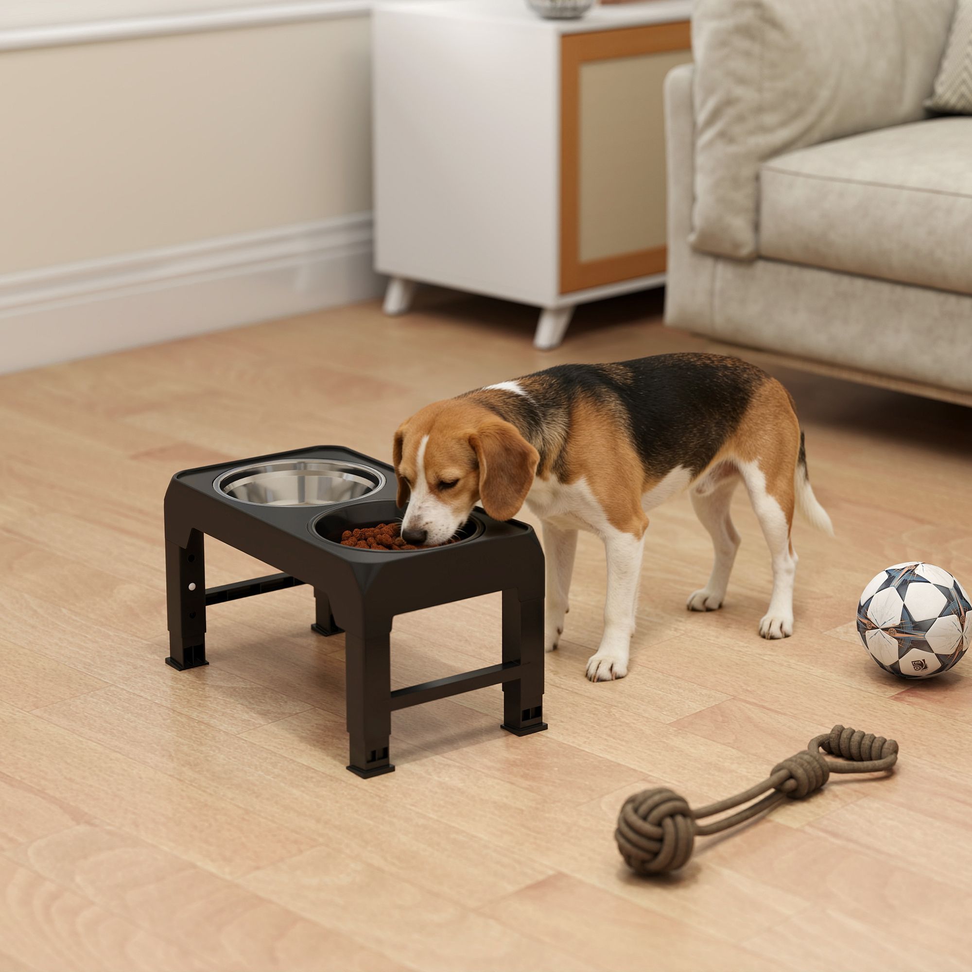 BRANDOR Foldable Raised Dog Bowl with Slow Feeder - Black