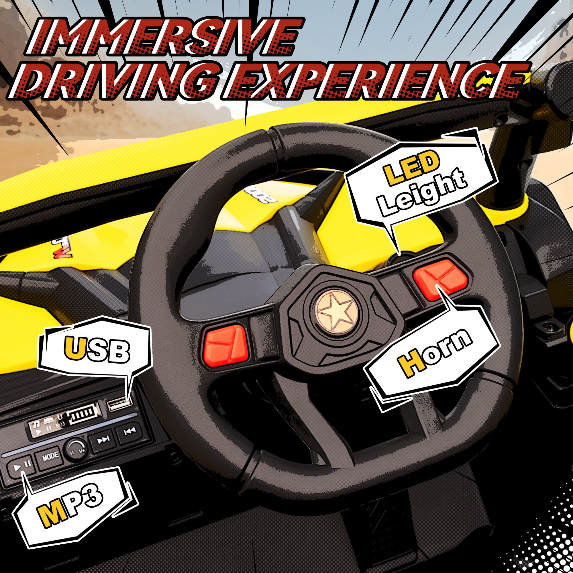 BRANOR Kids Electric Ride On Car 12V with Remote and Suspension - Yellow