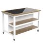 Introducing the latest addition to our Briley Kitchen Islands Collection, this kitchen island boasts elegance and functionality. Featuring an oak inlaid black granite top, it provides a luxurious surface for food preparation. Equipped with braked wheels for easy mobility, this island also includes two large oak storage shelves for keeping kitchen essentials organized.