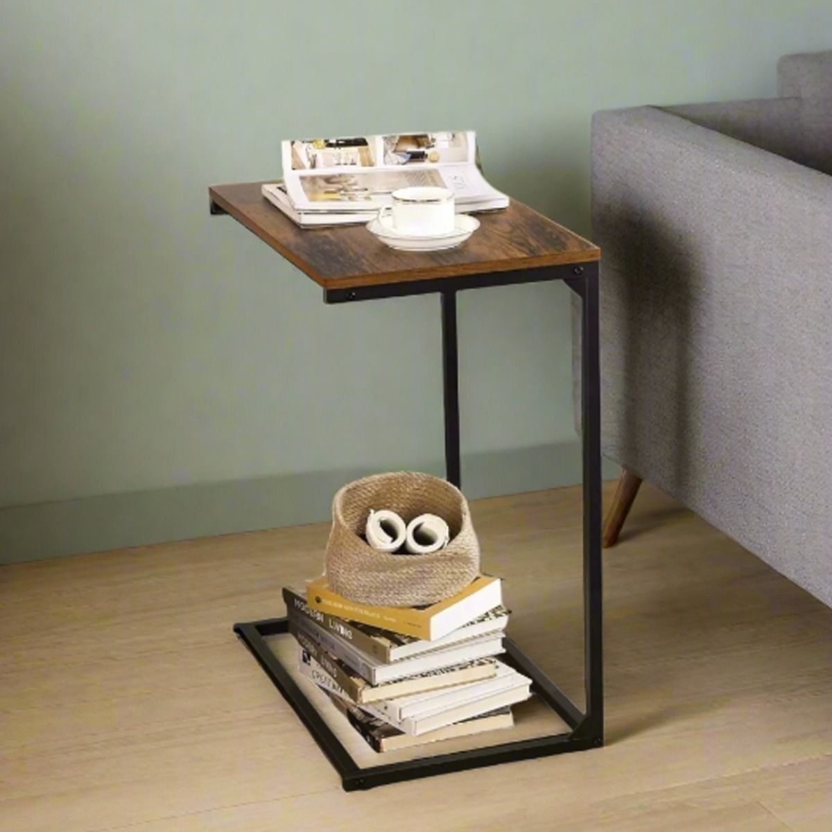 BRISTONE Side Table Small Laptop Table for Sofa or Bed - Rustic Brown and Black