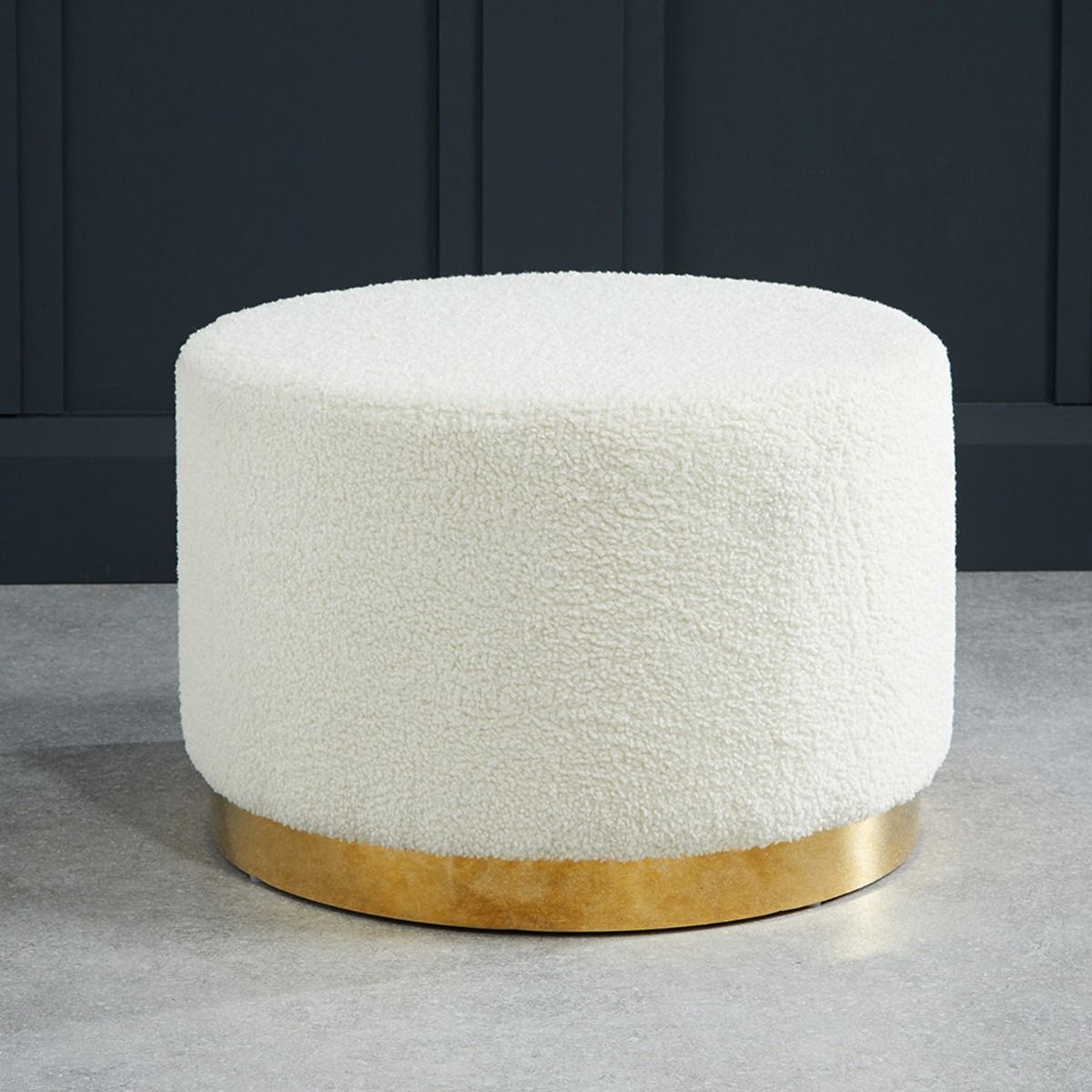 Introducing our Shearling Fabric Pouffe: Elevate your living space with this chic and cozy addition. The pouffe features sumptuous shearling fabric, creating a comfortable and stylish seating experience. Resting atop a gold-effect circular frame, this piece not only provides a touch of luxury but also serves as a statement accent in any room. Bring warmth, comfort, and a touch of glamour to your home with our Shearling Fabric Pouffe.