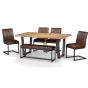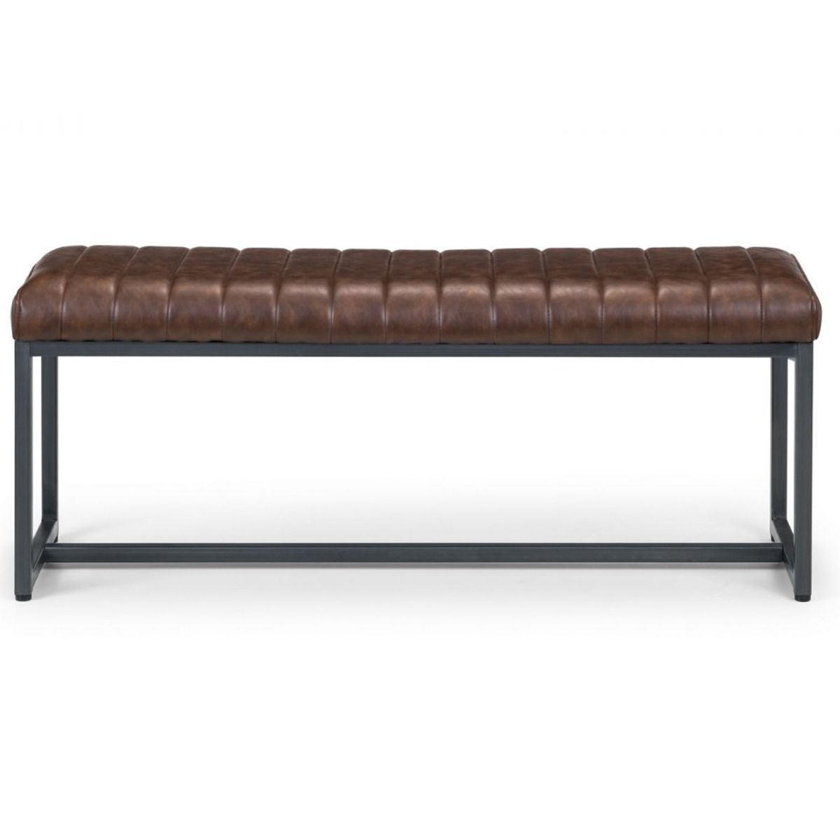 Finished in a vintage brown faux leather, upon an industrial style gunmetal frame this bench is the perfect match for the Brooklyn Dining Table.
